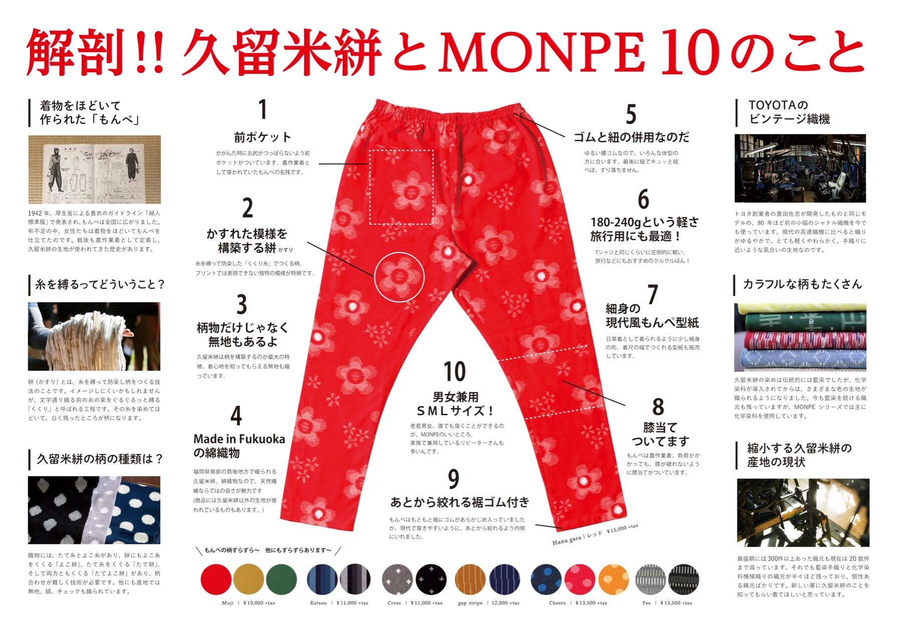 久留米絣を使った「現代風もんぺ」。